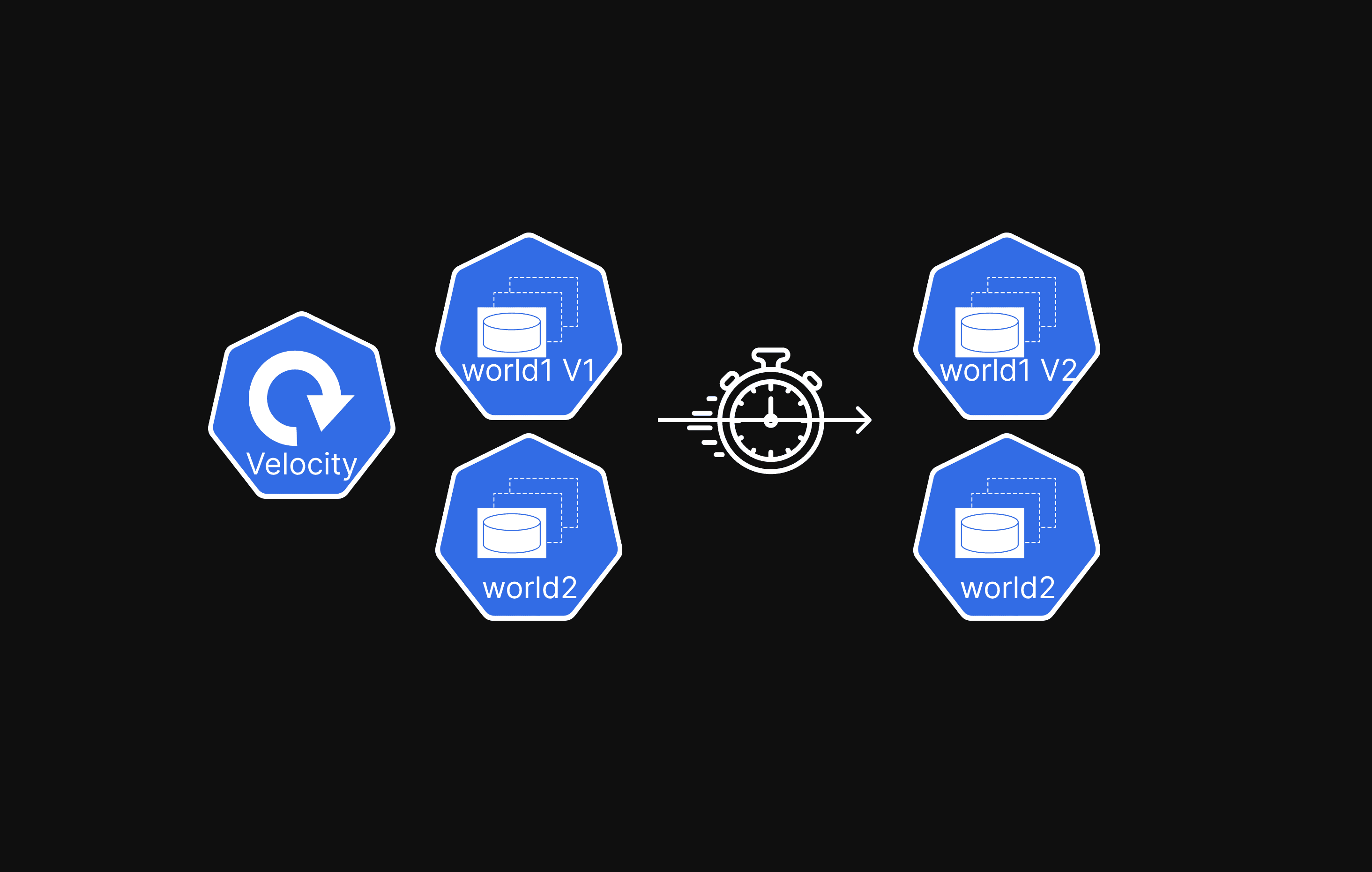 The Velocity proxy enables seamless server switching while individual servers can be updated independently